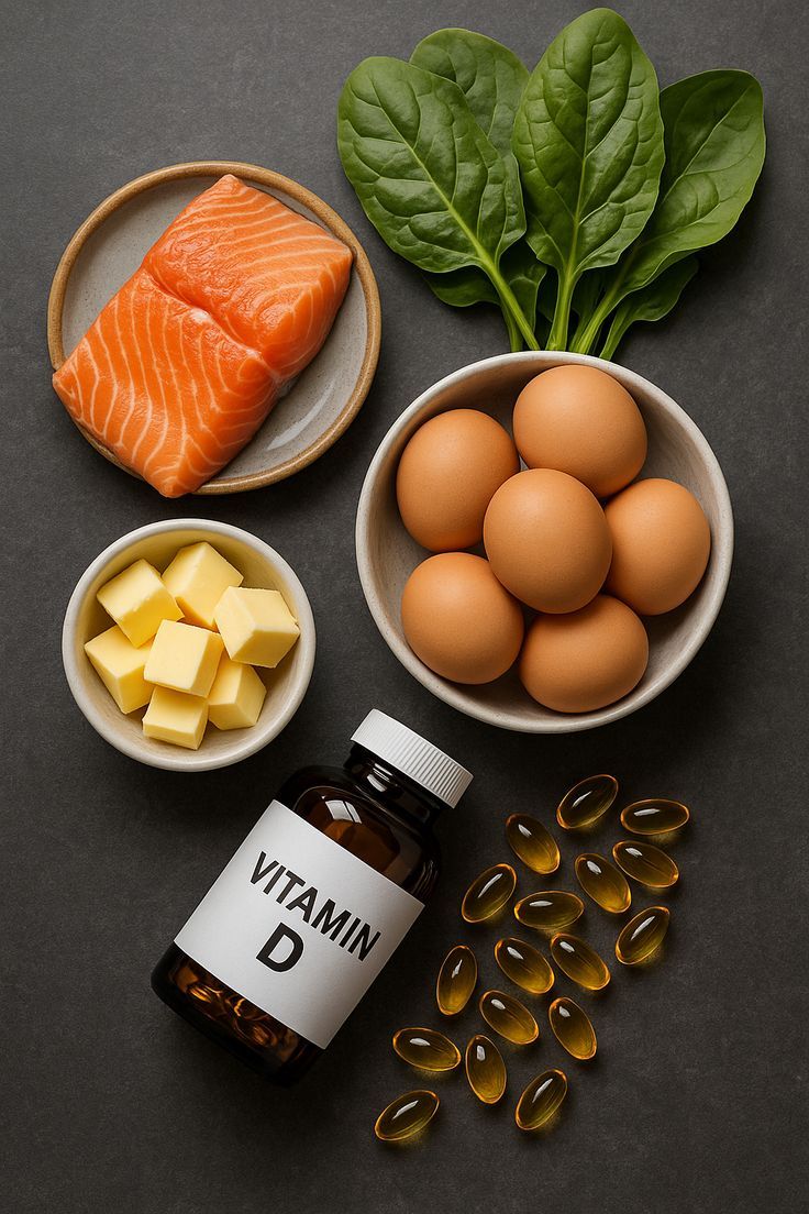 فيتامين د يساعد الجسم على امتصاص الكالسيوم والفوسفور، يقوي العظام والعضلات، يدعم المناعة، ويحسن المزاج. الجسم يصنعه بنسبة 90% من أشعة الشمس (UVB) على الجلد، والباقي من الأكل.